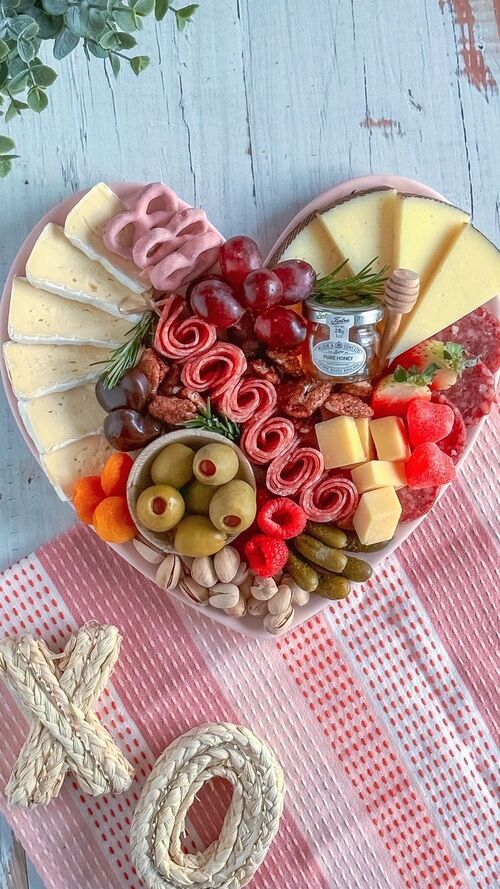 This heart-shaped charcuterie board adds a fun, festive touch to girls night or Galentine’s celebrations.