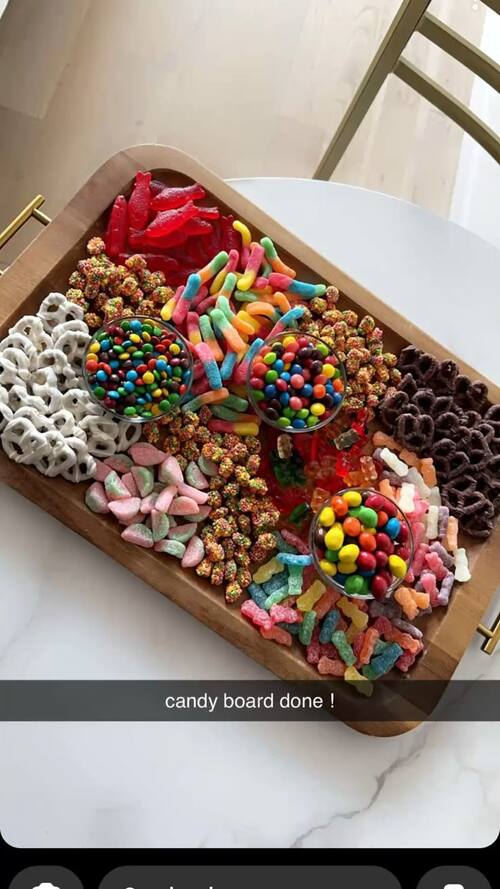 This girl’s night charcuterie board is a sweet lover’s dream, filled with colorful candies, gummies, chocolates, and fun treats.