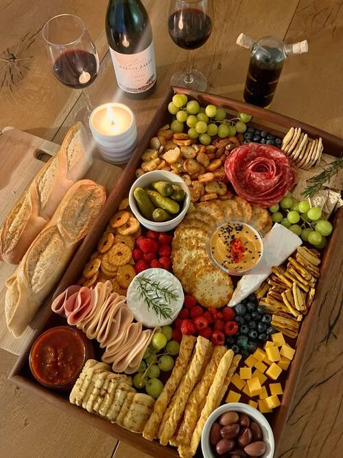 Add wine labels or handwritten pairing cards for a cute, elevated touch.