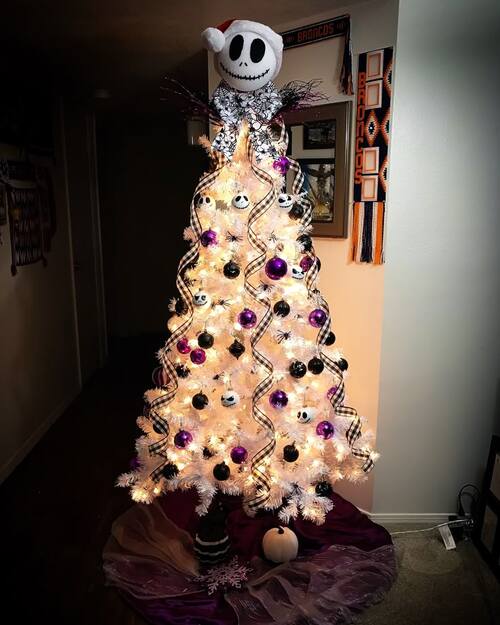 Top it off with a Jack Skellington tree topper for the ultimate spooky vibe.