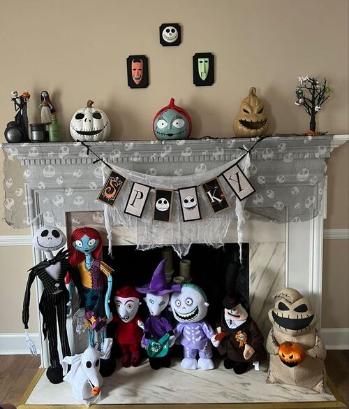 Transform your mantel into Halloween Town by adding mini figurines of Jack, Sally, and Oogie Boogie.