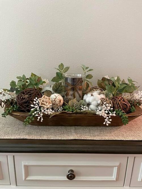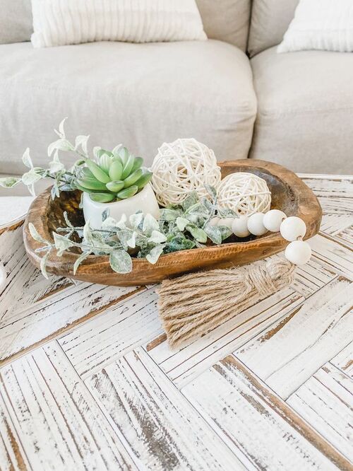 Whether it’s sitting on your dining table, coffee table, kitchen island, or entryway console, a styled dough bowl centerpiece instantly makes your space feel layered, intentional, and seasonally updated.