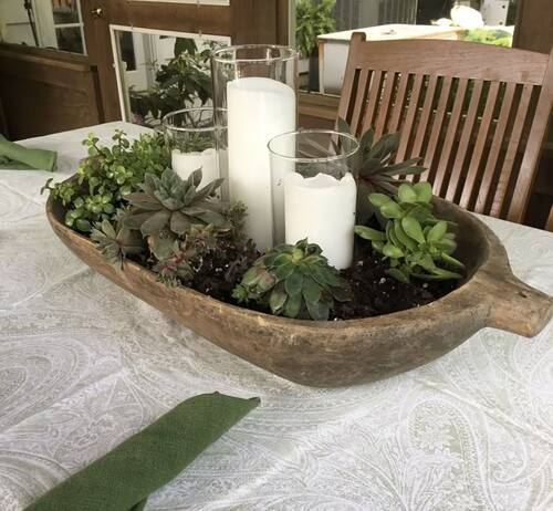 Fill your dough bowl with real succulents and place one or two candles in the center for a natural, living centerpiece.