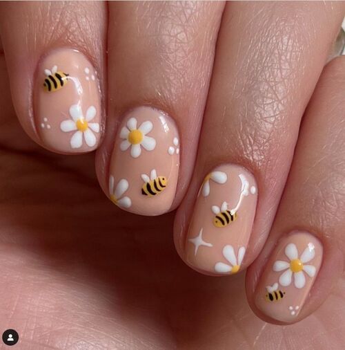 A subtle bee design on one or two nails adds a delicate, seasonal touch.