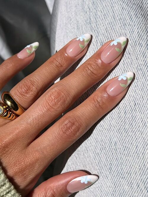 A sheer or nude base with tiny white daisies instantly gives spring energy.
