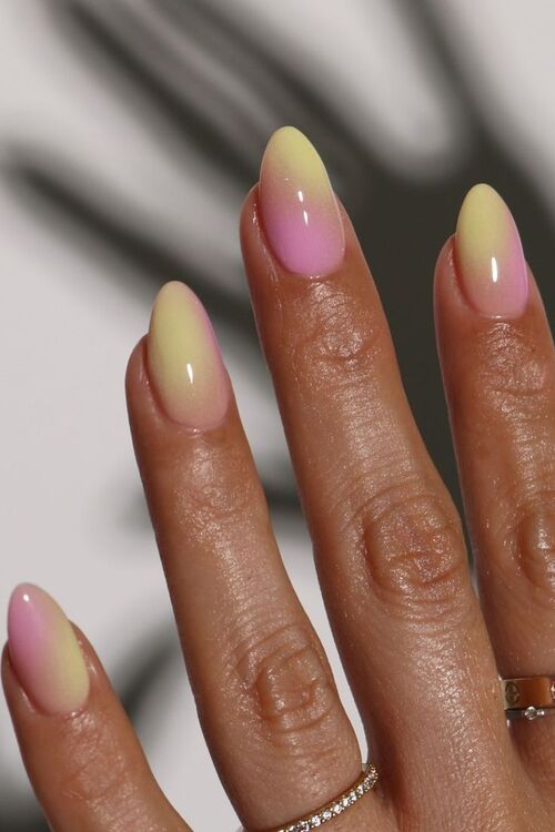 1. Soft Pink Yellow Ombre Nails