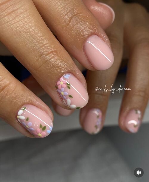 14. Short Pastel Floral Nails