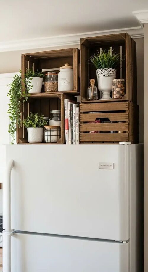 If you’re lucky enough to have a built-in nook on top of the fridge, you better use that space.