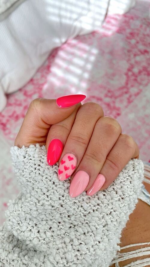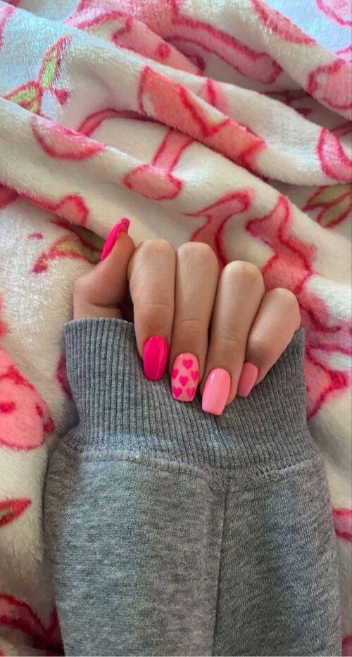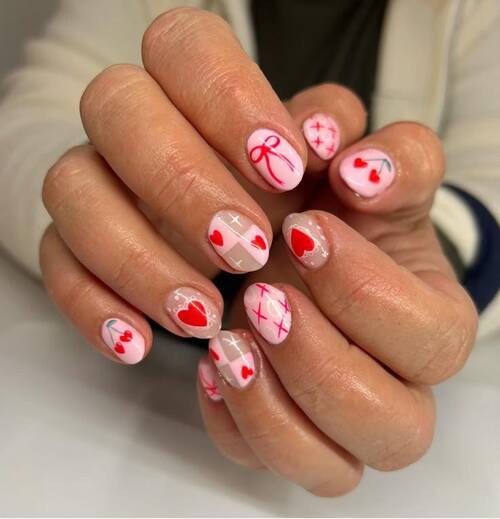 5. Pink Mix-and-Match Valentine’s Day Nails