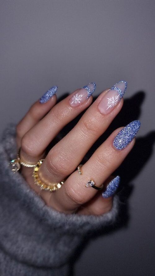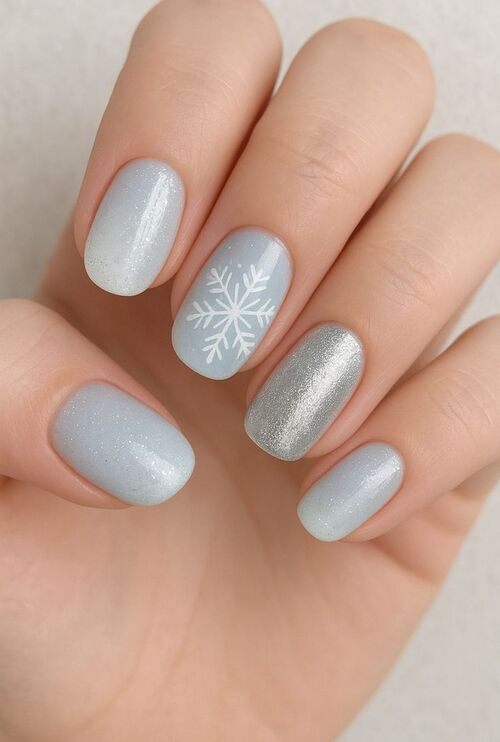 31. Light Blue and Nude Winter-Themed Nails