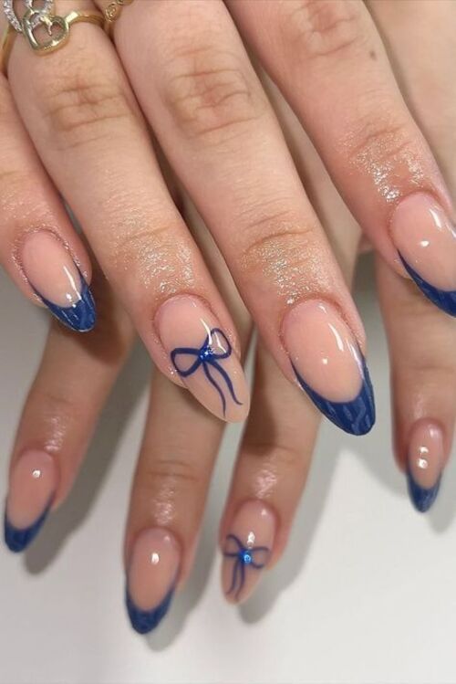 14. Blue French Tips with Blue Bows