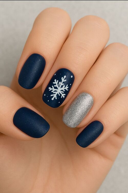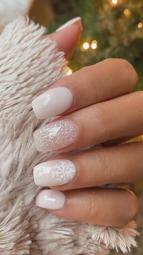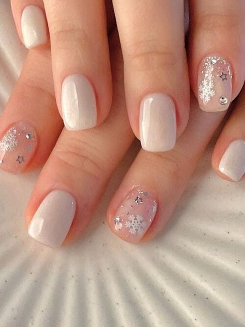 Subtle seasonal accents like snowflakes or stars add a delicate touch, making this manicure perfect for a cozy yet stylish winter vibe.