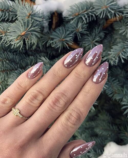 27. Rose gold polkadot chrome nails