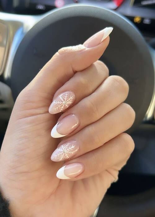 22. French manicure with snowflake art